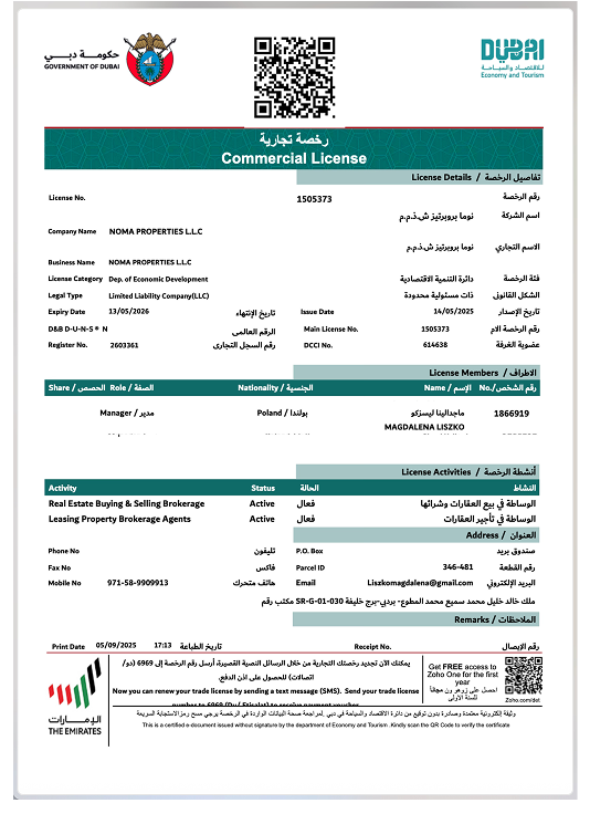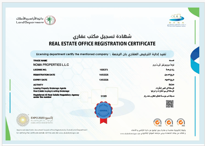 NOMA PROPERTIES LLC is a fully licensed and officially registered real estate agency in Dubai, dedicated to redefining the standards of trust, quality, and professionalism in the property market. Operating under the strict regulations of the UAE, we offer our clients complete confidence that every investment is secure, transparent, and in line with the highest industry requirements. We proudly collaborate only with the most established and respected developers in the region, ensuring that the properties we represent are not only exceptional in design and quality but also reliable in terms of legal and financial security.