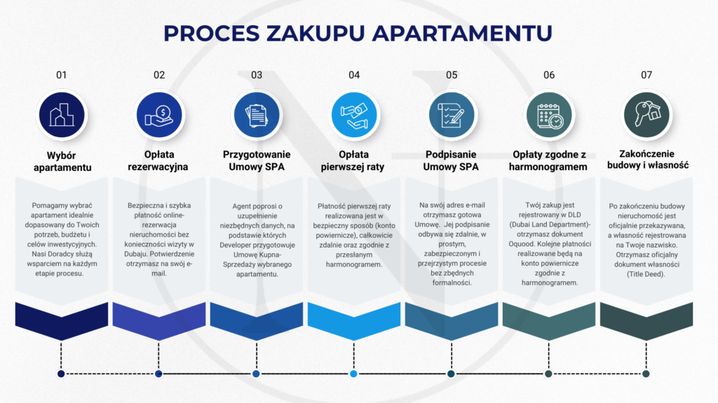 The purchase process is straightforward and often faster than in Europe. After selecting a property, buyers sign a reservation agreement, pay a deposit (usually 10–20%), and proceed to the Sales and Purchase Agreement. For off-plan properties, payments are made in stages linked to construction progress.